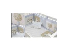 Content: 1 comforter 150cm x 100cm - 2 sideboards 130cm x 32cm - 1 headboard 32cm x 70cm - 1 changing pad 68cm x 45cm - 1 bombom cushion 58cm x 40cm